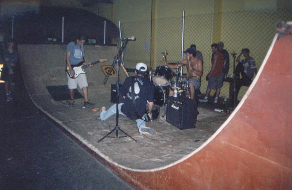 Show com as bandas Coice de Mula, The Concept e No Deal. Jamming Skate Park - R. Marechal Deodoro da Fonseca, 374 - Centro - Jundiaí - SP. A partir das 15 horas. Entrada: 3 reais. Para começar foi um correria danada pois tive que sair do trabalho um pouco antes e ir direto para o show para não chegar atrasado. Chegamos em tempo, aliás, tempo de sobra. O Smalls iria tocar mas não puderem vir pois teriam exames de vestibular ou algo do tipo. Então sobraram 3 bandas. Fizemos um sorteio para ver quem começava a tocar e como eu tenho muita sorte em sorteios fui sorteado. É a segunda vez que tocamos em Jundiaí e a segunda vez que somos a primeira banda. Não preciso nem dizer que não tinha muita gente quando tocamos. Mas foi legal ver que tinha um pessoal de Campinas que foi para prestigiar o show, e por isto e pela cerveja fizemos um show bom. Não sei exatamente quantas músicas nós tocamos mas chegou um momento em que não me lembrava de mais nenhuma (e existiam muitas a serem tocadas) e tivemos que tocar a última para encerrar. Depois foi a vez do The Concept, banda de São Paulo, subir no half (half, não palco). Estes caras mandam ver um rock alternativo/experimental à la Superchunk, Thee Butchers Orchestra, Sonic Youth. Enfim, é o tipo de som que me agrada. Boa presença de palco dos rapazes da banda. Foi neste momento em que teve o maior público, um público realmente bom. A única coisa que não deu para ouvir no show do The Concept foi o vocal, foi um show apenas instrumental, devido a aparelhagem local. E por último foi a vez do No Deal, banda veterana de Jundiaí, os caras mandam um hc pesado e as vezes lento no estilo semelhante ao HC NY. Foi neste momento que os que conheciam a banda começaram a agitar, não foram muitos também. E muita gente foi saindo do lugar mas até o final do show ainda tinha uma galera legal na parte de dentro.