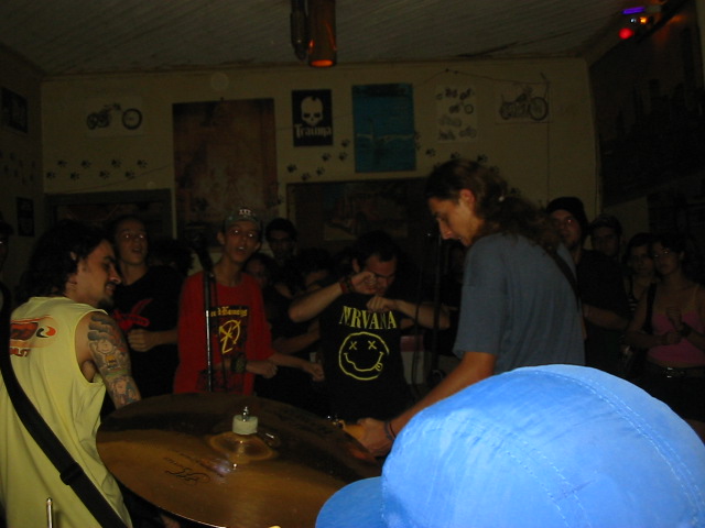 Show com as bandas Coice de Mula, Jason, Scarlett O´Hara e Fake Toyz. Alex Bar - R. Baronesa Geraldo de Rezende, 14 - Taquaral - Campinas SP. 17:00 - Entrada: 5 reais. Este show foi um pouco complicado porque a questão da organização estava meio sinistra, não tinha um organizador oficial e tudo estava meio que abandonado. Então, decidi correr atrás da organização e fiz o que pude. No geral foi tudo muito bem. A primeira banda a tocar foi a Fake Toyz, aliás fazendo sua estréia. O show deles foi bem legal, hardcore melódico em português com boas músicas. Ainda levaram dois covers, um do NOFX e outro do Fistt. A galera aprovou. Depois veio o Scarlett O´Hara e fez o show mais agitado da noite. Renan e companhia tornaram o Alex Bar mais quente do que poderia ser. hehehe... Em seguida foi a nossa vez, a vez do Coice de Mula. Fizemos um repertório extremamente longo o que deve ter cansado muita gente. hehehe. Acho que tocamos por uma hora e meia, fizemos isto porque o pessoal do Jason não tinha chegado ainda. Aliás, no meio do show, entre uma música e outra, eu parava para dar orientação para a galera do Jason chegar ao bar. Super anti-profissional, mas acontece. E o calor dentro do bar estava terrível. Acredito que neste show ninguém pode falar que deixamos de tocar alguma música. hehehe. Felizmente o Jason chegou e mal chegaram já foram se posicionando para o show derradeiro da noite. Fizeram um repertório bem curto porque estavam com um vocalista novo. Infelizmente a voz não estava dando para se ouvir no show deles. Não sei se foi assim com as bandas anteriores. Mas ainda bem que praticamente todos conheciam as letras e isto não prejudicou tanto o show deles que foi bastante agitado também. Aliás, o Leonardo Panço estava lançando seu livro "Jason 2001: Uma Odisséia na Europa", o qual eu já li e recomendo a leitura.