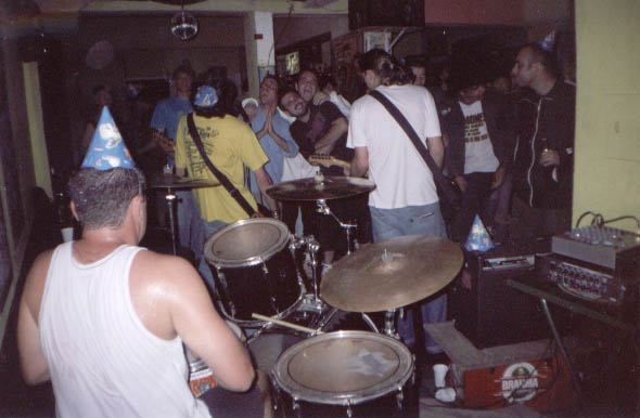 Show com as bandas Coice de Mula e Leptospirose. Bar do Zé - Av. Albino J.B.Oliveira, 1060 - Barão Geraldo - Campinas SP. 21:00 - Entrada: 4 reais. O aniversário de 6 anos do Coice de Mula aconteceu numa noite muito agradável, quase mágica. Estávamos todos lá tomando umas quando chega a vez do Leptospirose mostrar para que veio. E não tem o que fazer o som deles é arregaçador e deixou todo mundo de boca aberta. Não tinha como sair ileso. E desta vez não tinha nenhum desfalque na banda. Estavam todos lá, Serginho tocando bateria como se estivesse no The Who, Veiote e seu baixo virtuoso e Quique Brown o vocalista e guitarrista barulhento da banda. hehehe. Foi muito foda e ficou aquele pensamento: "e agora?". Bom, não digo que estávamos preparados mas tentamos fazer uma apresentação boa com o Coice de Mula. Eu tenho a ligeira impressão de que não fomos muito bem tecnicamente... hehehe.. mas tudo conspirava para uma grande noite, quase todos os amigos estavam ali, já tínhamos bebido um pouco além da conta, e graças ao patrocínio da Walt Disney distribuímos chapéuzinhos do Toy Story 2. hahaha. Ficou um puta clima no Bar do Zé. E o show foi muito legal, tocamos músicas de todas as fases, inclusive uma novíssima chamada "I Don´t Think You´re Right", canditada a hit. hehehe. No meio da música "Desabrigado" chamamos o Thiago com Agá para terminar a música na bateria pois ele é o baterista da formação original. Depois o The Rockillers All Star Trio, uma banda de Campinas, assumiu os instrumentos e tocou uma música da gente chamada "Leave Me Alone (again)" e agente aproveitou para agitar um pouco com a galera e do nada eu sou erguido pela galera e fico a um palmo do teto do bar. hehehe. Bacana demais. Voltamos para continuar o show e a galera estava cada vez mais louca, eu esquecia alguns trechos da letra e o pessoal já assumia o microfone. Terminamos com "Ouvi Dizer" que foi uma gritaria só, de arrepiar mesmo. São raros estes momentos, e olhando na cara de cada pessoa no bar dava para perceber uma harmonia e alegria por estarmos vivos, felizes, dançando e curtindo um rock. Depois ainda teve uma discotecagem da Mariana com um seleçãozinha anos 80 e para alegria de muitos como eu rolou uns Smiths, Morrissey e blá blá blá.